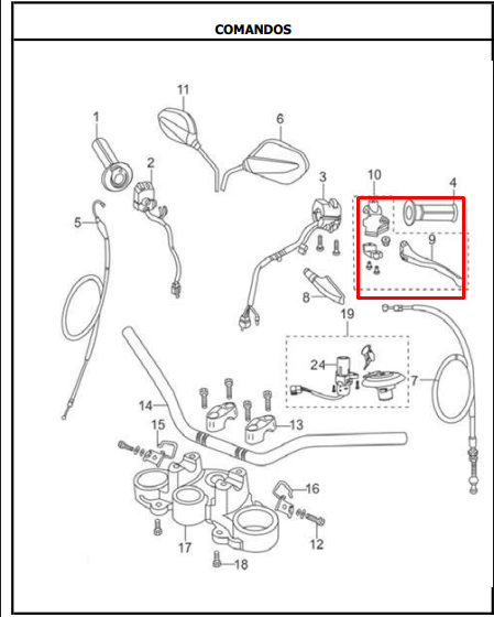 Manigueta Izquierda con Soporte Ttr 125 - Xm 180 Akt Original