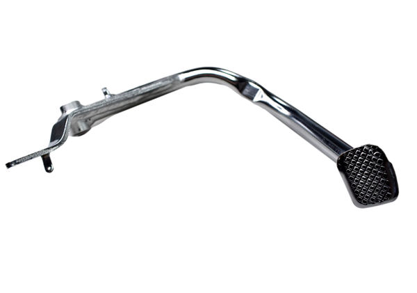 Pedal de frenos permite reducir la velocidad o detenerla completamente cuando lo necesitas. Al presionarlo con el pie, activa el freno trasero, ayudándote a controlar la moto, especialmente en situaciones donde necesitas disminuir la velocidad de manera suave y segura. Presiona suavemente para detenerte sin brusquedad. Combina el freno trasero con el delantero para mayor seguridad. Es una pieza clave que te da el control necesario para manejar con confianza en cualquier camino.