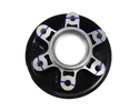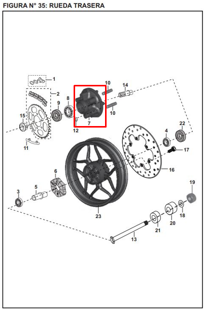 Porta de sprocket mantiene el piñón trasero, también llamado sprocket bien alineado y asegurado, lo que garantiza que la rueda trasera reciba toda la potencia del motor de manera  continua. No solo es clave para evitar el desgaste irregular de la cadena y del piñón, sino también para que la moto responda mejor al acelerar y frenar, haciendo cada trayecto más estable y controlado. Mantener el porta sprocket en buenas condiciones te ayudará a prolongar su vida útil y del sistema de transmisión. Revisarlo regularmente, es importante para evitar sorpresas en el camino y mantener el rendimiento en su mejor nivel.